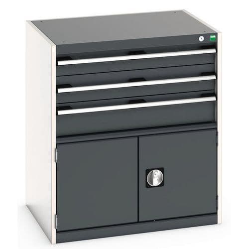 Dílenská zásuvková skříň Bott Cubio 200, 90 x 80 x 65 cm, 3 zásuvky, 1 skříňka, šedá-antracit