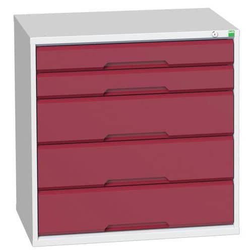 Dílenská zásuvková skříň Bott Verso, 80 x 80 x 55 cm, 5 zásuvek, šedá-červená