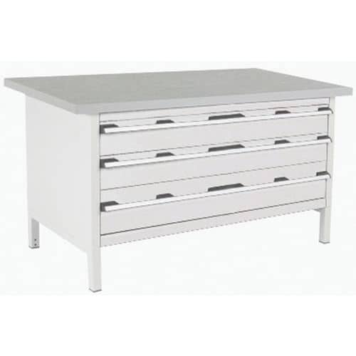 Dílenský stůl Bott Cubio Storage, 84 x 150 x 75 cm, 3 zásuvky, linoleum, šedá-šedá