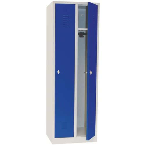 Montovaná šatní skříň Manutan Expert IS, 2 oddíly, otočný uzávěr, šedá/modrá