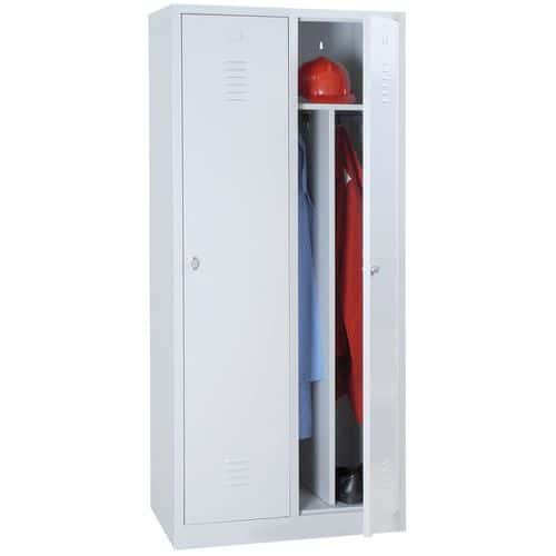 Montovaná šatní skříň s mezistěnou Manutan Expert IS, 2 oddíly, otočný uzávěr, šedá/šedá