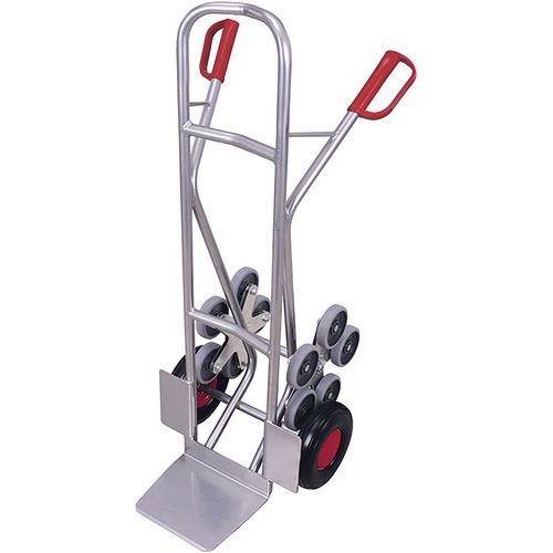 Schodišťový rudl s tříramennými hvězdicovými koly s šedými nešpinivími pneumatikami z termoplastické pryže.