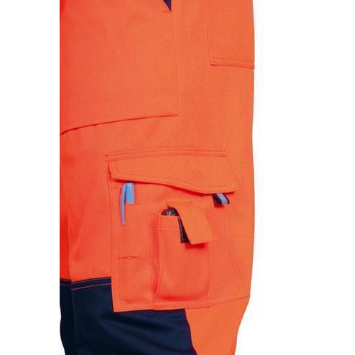 Oranžové výstražné reflexní montérky do pasu s vysokou viditelností ve dne i v noci. Přední, zadní a boční kapsy schovají drobné předměty potřebné k práci. Speciální kapsička na telefon. Pohodlné nošení zajišťuje pevný pas s gumou v bocích. Našitá poutka v pase umožňují použití pásku. Kvalitní reflexní pruhy 3M na nohavicích.