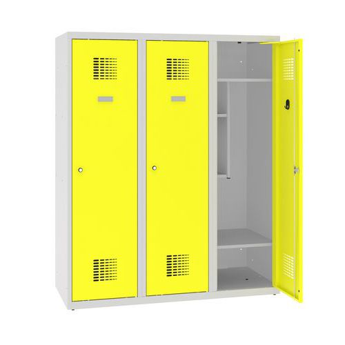 Šatní skříň svařovaná z ocelového plechu tloušťky 0,7 mm.