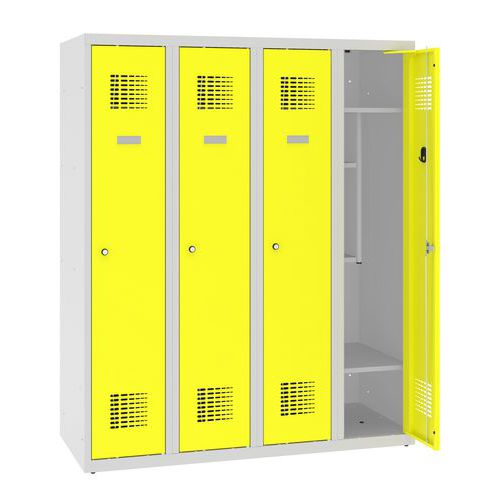 Šatní skříň svařovaná z ocelového plechu tloušťky 0,7 mm.