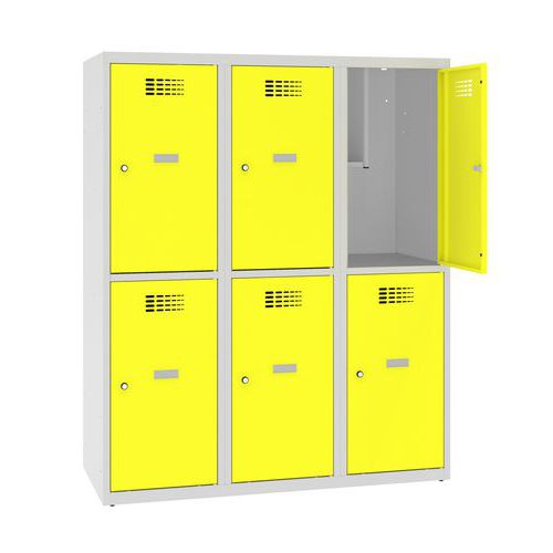 Kovové šatní skříně ze dvou oddílů v několika barevných variantách.