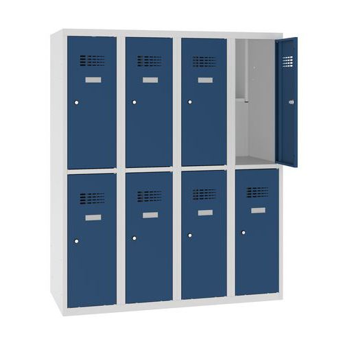 Svařovaná šatní skříň z odolného profilovaného ocelového plechu o tloušťce 0,6 mm (odpovídá 0,8 mm standardnímu).