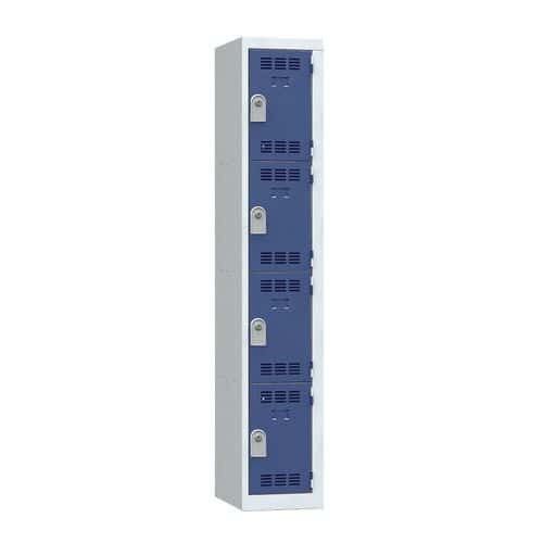 Kovová šatní skříň na lavici 2-dvířková, 500 x 500 x 2080 mm, šedá-modrá