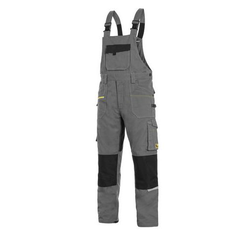 Pánské pracovní zahradníky z materiálu Move & Flex, který je vysoce odolný, flexibilní a umožňuje volný pohyb bez omezení. V bocích se nachází pruženka pro snadné oblékání a lepší přizpůsobení se postavě. Sed kalhot je zesílen pro vyšší odolnost a delší výdrž oděvu. Ergonomická kolena jsou vyztužena materiálem 600D polyester. Kalhoty jsou vybaveny zipovou a dělenou náprsní kapsou, předními kapsami, zadní kapsou a bočními multifunkčními kapsami s vyztužením 600D polyester. Šle jsou odpruženy gumou v zadní části. Reflexní doplňky zvyšují bezpečnost v prostředí se zhoršenou viditelností. Kalhoty jsou vybaveny EASY-PROLONG systémem, který umožňuje snadné prodloužení střihu na vyšší postavu uvolněním švu na nohavicích.